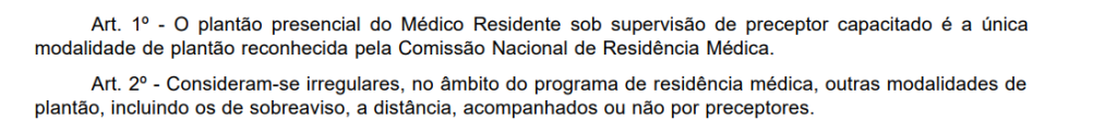 Essa decisão leva em conta o disposto na Lei Federal 6.932/1981 que estabelece a Residência Médica como treinamento em serviço, sob supervisão dos preceptores e que a lógica do plantão sobreaviso contraria essa lei.