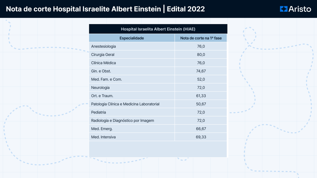 Você busca aprovação no Hospital Israelita Albert Einstein – HIAE 2022-2023? A Aristo tem a melhor metodologia de preparação para residência médica do país! Clique aqui e conheça nossos cursos.