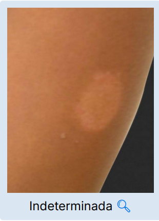 Ela possui mais lesões do que a indeterminada e é intermediária com placas eritematosas variadas.