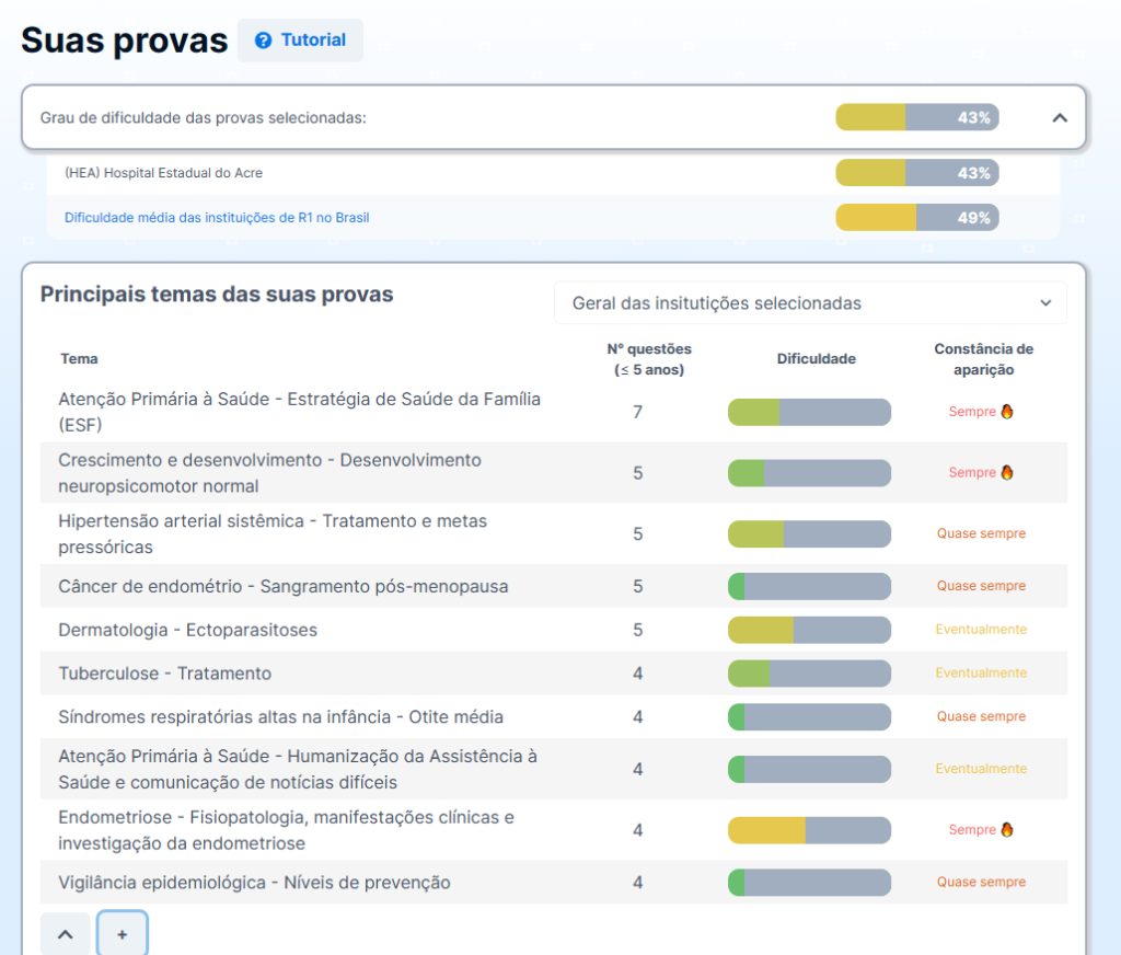 Através de nossa ferramenta, conheça os principais temas incidentes por ordem de prioridade: os que mais caem primeiro e os que menos caem, por último.