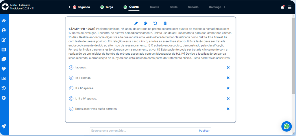 Outro tipo recorrente de questão consiste em definir alternativas corretas e incorretas a partir de 4 alternativas.
