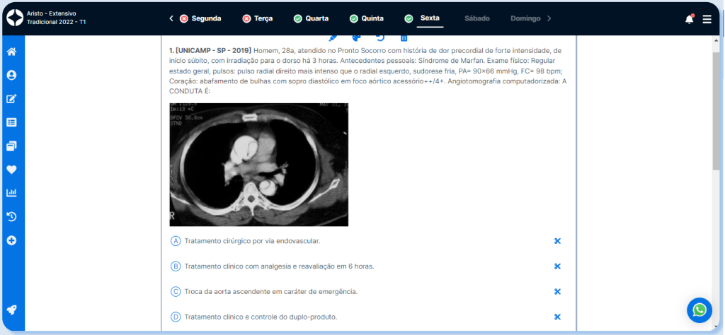 As imagens costumam ser para interpretação de ECG, TC ou RX. Há poucas imagens sobre achados clínicos.