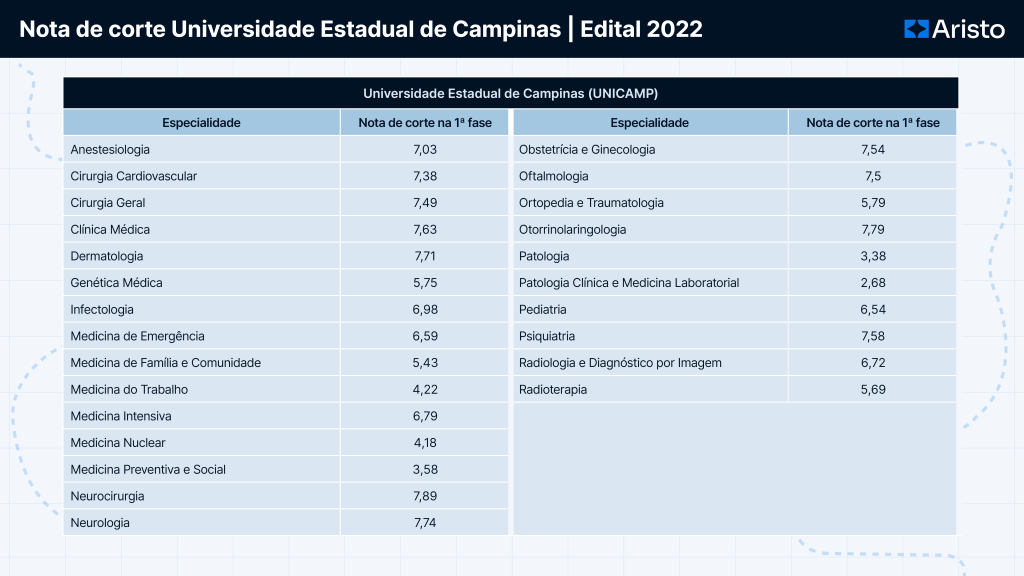 Confira as notas de corte da Residência Médica UNICAMP 2021-2022 para todos os programas.