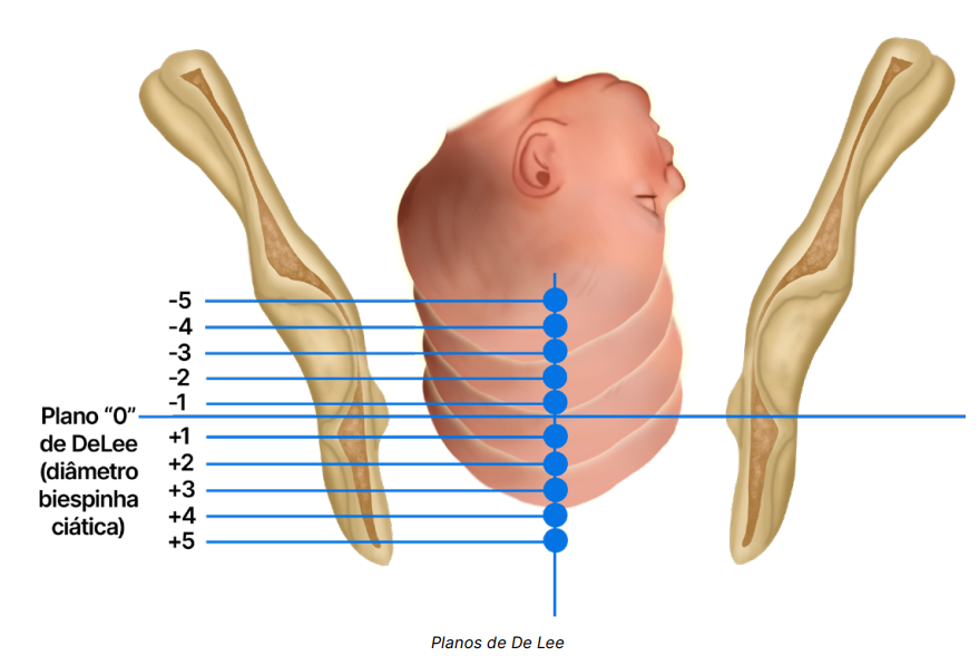 O plano 0 fica na altura das espinhas isquiáticas, planos negativos estão contra o nascimento (serão posições mais internas na pelve, acima da espinha isquiática), enquanto os planos positivos estão a favor do nascimento (posições mais externas na pelve, abaixo da espinha isquiática).