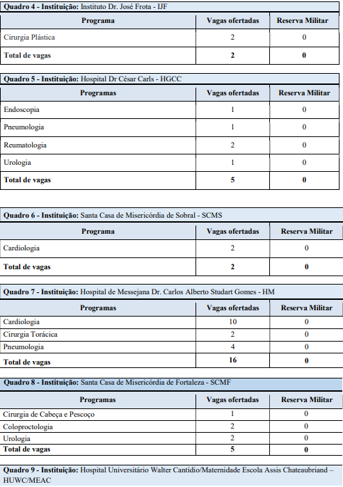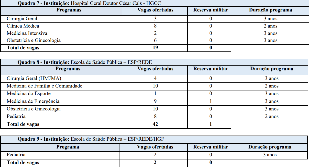 Veja abaixo o quadro de vagas do processo seletivo da SURCE para o processo seletivo do ano de 2024!