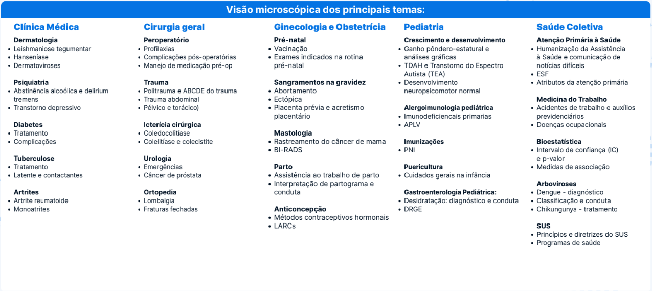 Obs: As questões referentes à Saúde Mental e Medicina de Urgência estarão contidas em 20% nas especialidades definidas acima